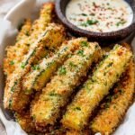 This Baked Zucchini Fries recipe offers a healthy and delicious alternative to traditional fries. Coated in a crispy panko and parmesan crust and baked to golden perfection, these fries are perfect as an appetizer or snack, paired with a tangy homemade dijon mustard dipping sauce.