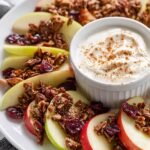 Apple Nachos are a fun and healthy snack featuring sliced apples topped with almond butter, granola, nuts, dried cranberries, pepitas, and a spiced vanilla yogurt drizzle. Perfect for a quick treat or dessert, this recipe combines crisp apple slices with creamy and crunchy toppings for a delightful flavor and texture contrast.