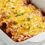 - Garnish and Serve: Remove from oven, sprinkle chopped green onions over the enchiladas for a fresh, vibrant garnish, and serve warm.