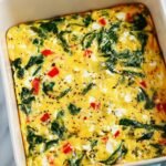 This healthy breakfast casserole is a flavorful and nutritious morning dish featuring sautéed bell peppers, green onions, and spinach, combined with eggs, dairy, and feta cheese. Baked to a fluffy, tender texture, it's perfect for meal prep or a hearty start to your day.