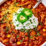 A hearty and flavorful leftover turkey chili recipe that transforms your cooked turkey into a comforting, spicy dish perfect for family dinners or gatherings. This chili combines a blend of spices, beans, tomatoes, and corn to create a rich, savory meal topped with optional cheddar cheese and sour cream.