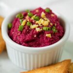 This Roasted Beet Hummus combines the earthy sweetness of roasted beets with the creamy texture of traditional hummus, enhanced by garlic, tahini, and a smoky paprika kick. Garnished with toasted walnuts, fresh chives, and lemon peel, it’s a vibrant, nutritious dip perfect for snacks, appetizers, or a healthy side.