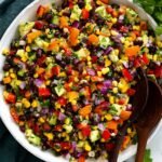 A refreshing and vibrant Black Bean and Corn Salad featuring black beans, corn, fresh vegetables, and a zesty lime-cilantro dressing. Perfect as a light side dish or a healthy snack, this salad combines a variety of textures and flavors including creamy avocado and a touch of heat from jalapeno.