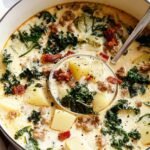 A hearty and comforting Zuppa Toscana soup recipe featuring spicy Italian sausage, crispy bacon, tender potatoes, kale, and cream simmered in a flavorful chicken broth. Perfect for a cozy dinner or meal prep.