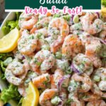 When shopping for this shrimp salad, I always pick fresh, good-quality shrimp with the shells still on to lock in flavor while cooking. Fresh herbs and lemon are also key for that bright, fresh punch this recipe is known for.