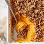 - Assemble Casserole: Spoon the sweet potato mixture evenly into the prepared casserole dish. Sprinkle the pecan and oat topping evenly over the sweet potato layer.
